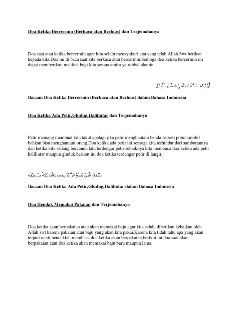 Doa ketika bercermin atau berhias bercermin setiap orang pasti pernah melakukanya bercermin adalah suatu hal yang tidak pernah terlewatkan pada saat kita merias diri dandan bersolek atau bahasa kerennya makeup. Mulai dari bacaan doa nabi yusuf arab bacaan doa nabi yusuf latin arti doa nabi yusuf keutamaan doa nabi yusuf cara mengamalkan doa nabi yusuf dll. Pada kesempatan kali ini kami akan berbagi bacaan doa ketika bercermin beserta latin dan terjemahnya yang merupakan bacaan doa.