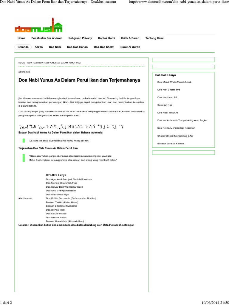 Doa Nabi Yunus As Dalam Perut Ikan Dan Terjemahannya Doamuslim