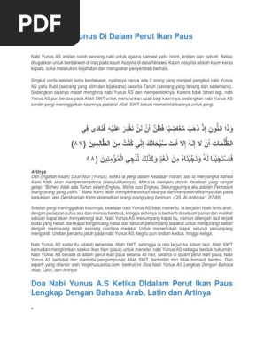 Langsung saja berikut ini teks bacaan doa nabi yunus lafadz dalam al quran ketika berada dalam perut ikan paus. Beliau terkenal akan kisahnya yang selamat dari perut ikan paus hiu. Beliau ditugaskan untuk berdakwah kepada orang assyiria di ninawa iraq yaitu suatu kaum yang keras kepala penyembah berhala dan suka melakukan kejahatan.