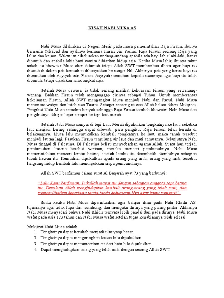 Kisah Nabi Musa As Lengkap Dari Lahir Sampai Wafat Doc